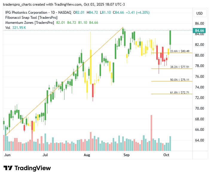 IPG Photonics Corporation is a leader in high-power fiber lasers and photonics solutions used in manufacturing, automotive, and communications industries. Its products enable precision cutting, welding, and advanced material processing, supporting global adoption of automation. As industries demand greater efficiency and innovation, IPG remains at the forefront of laser technology applications. Chart