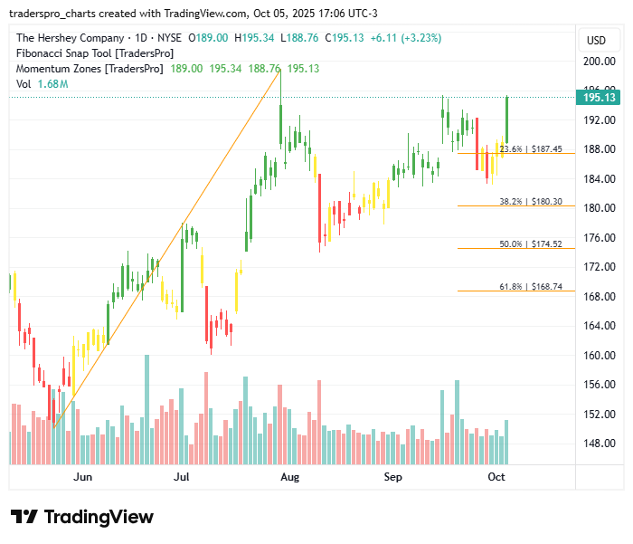 The Hershey Company is a global leader in confectionery and snacks, known for its iconic chocolate brands and expanding portfolio in salty and better-for-you categories. With strong pricing power and brand loyalty, Hershey continues to deliver consistent growth and profitability. Its strategic focus on innovation and acquisitions positions it well in the evolving snack food industry. Chart