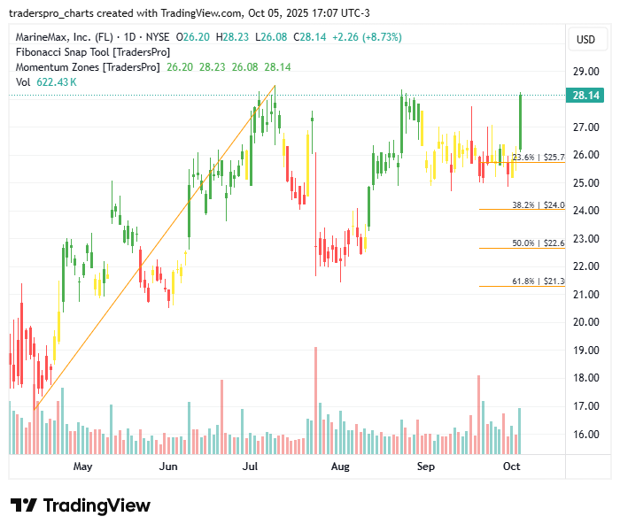 MarineMax, Inc. is the largest recreational boat and yacht retailer in the U.S., offering premium brands and services that cater to luxury and leisure markets. The company’s expansion into yacht management, financing, and charter services has diversified its revenue streams. With steady consumer demand for boating lifestyles, MarineMax is positioned to benefit from high-end leisure spending trends. Chart
