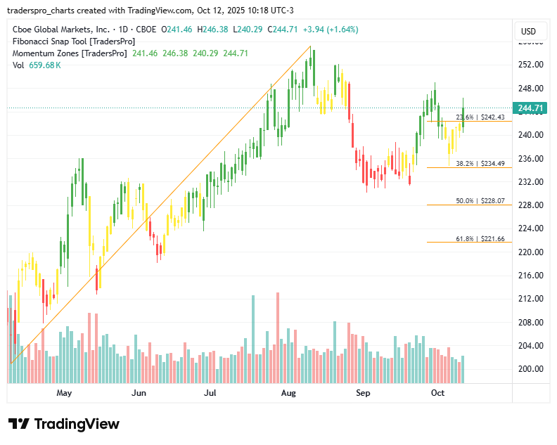 Cboe Global Markets, Inc. operates one of the world’s largest exchange networks, providing trading, data, and clearing services for equities, derivatives, and digital assets. With strong demand for risk management and market access tools, Cboe continues expanding globally. Its leadership in volatility products and market infrastructure supports steady, long-term growth. Chart