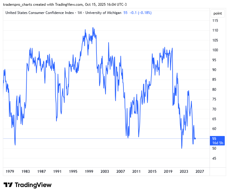 In plain terms: the average American believes the economy “looks good on paper but not for me.” That disconnect is why sentiment is nearing multi-decade lows even as the S&P 500 and job numbers shine.