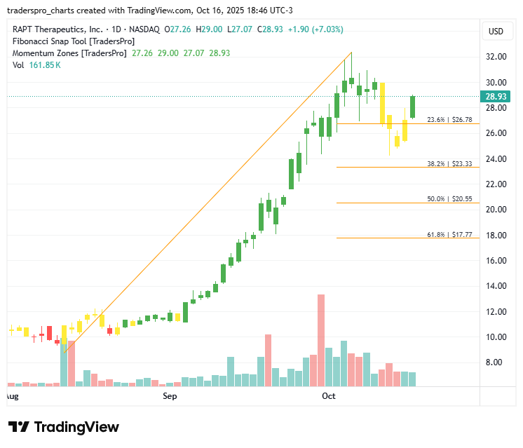 RAPT Therapeutics, Inc. is a clinical-stage biopharmaceutical company developing oral small-molecule therapies for inflammatory diseases and cancer. Its lead drug candidates target key immune pathways, aiming to deliver precise and durable treatments. With promising trial data and partnerships supporting progress, RAPT continues to advance its innovative immunology pipeline. Chart
